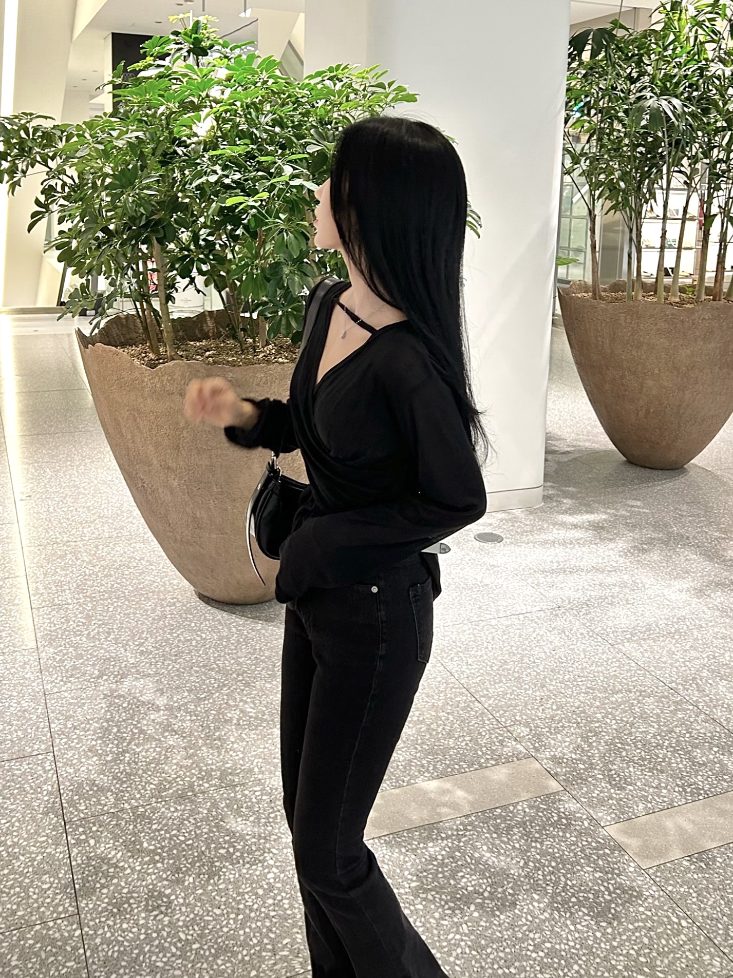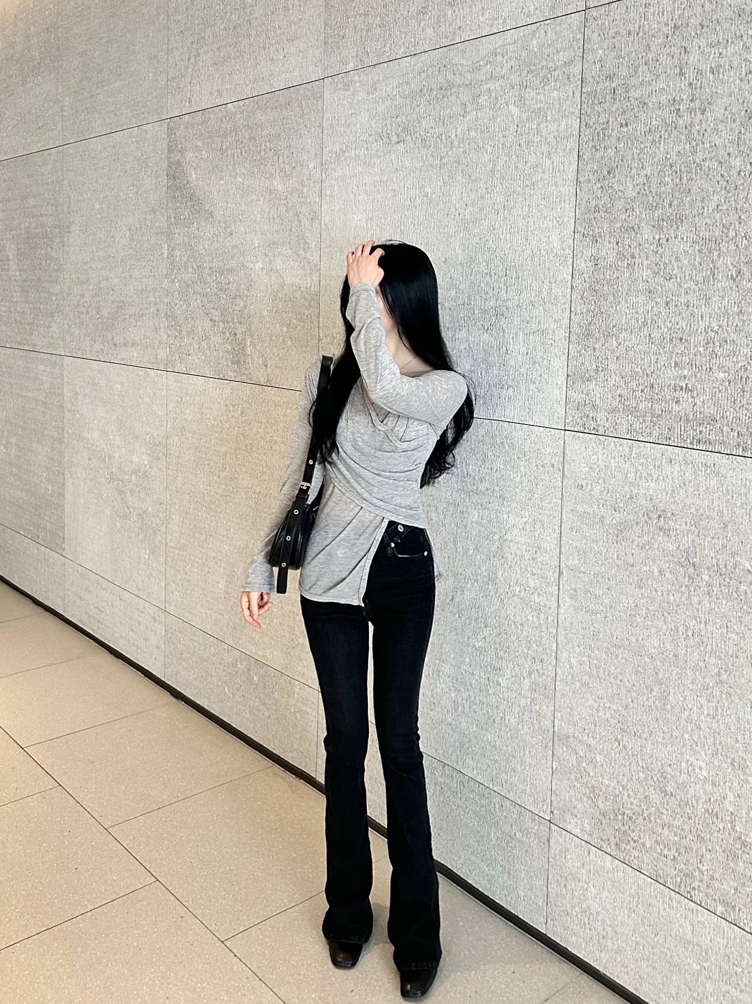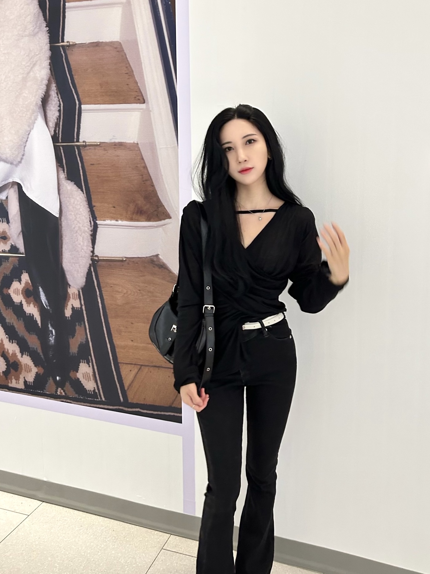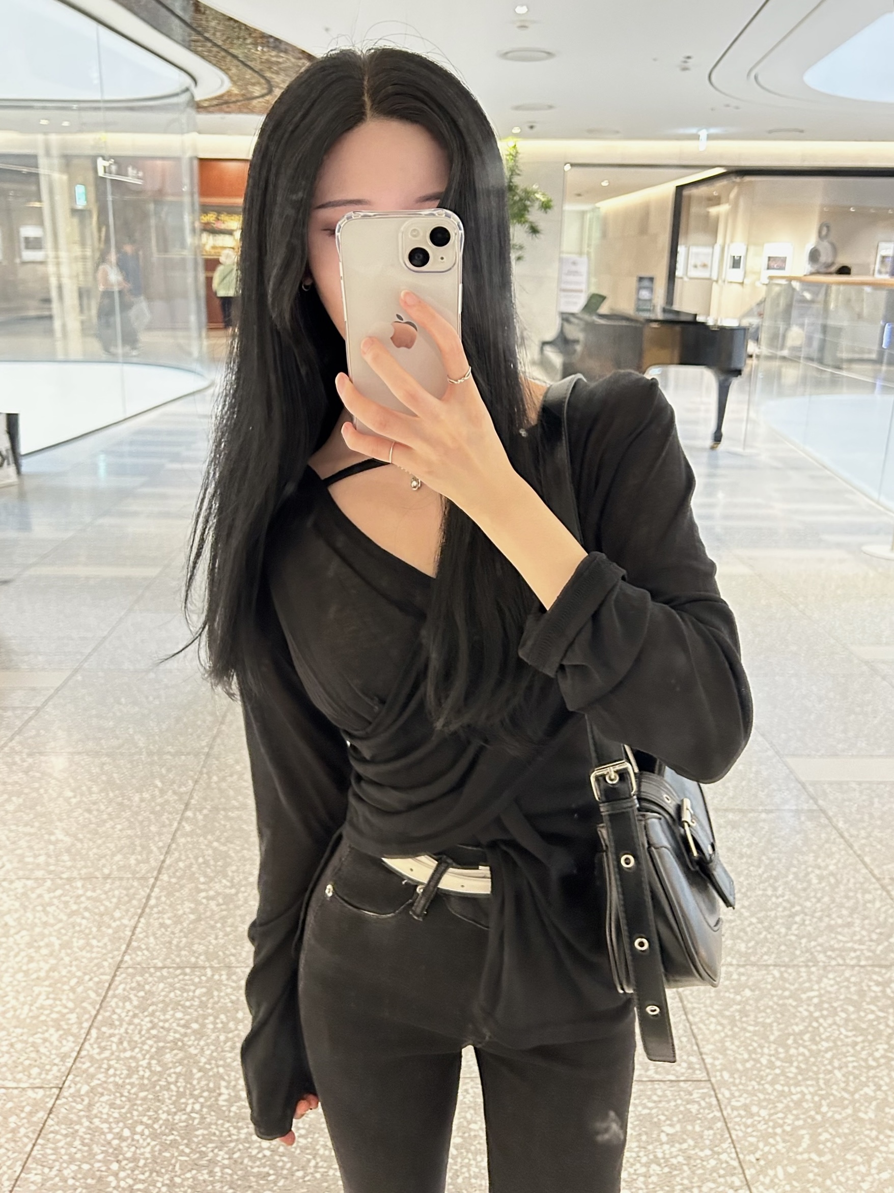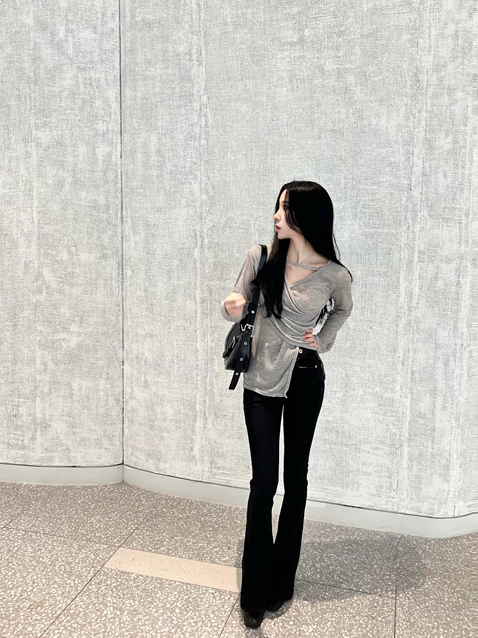 ✓ 목선과 쇄골라인이 강조되는 브이 넥 라인