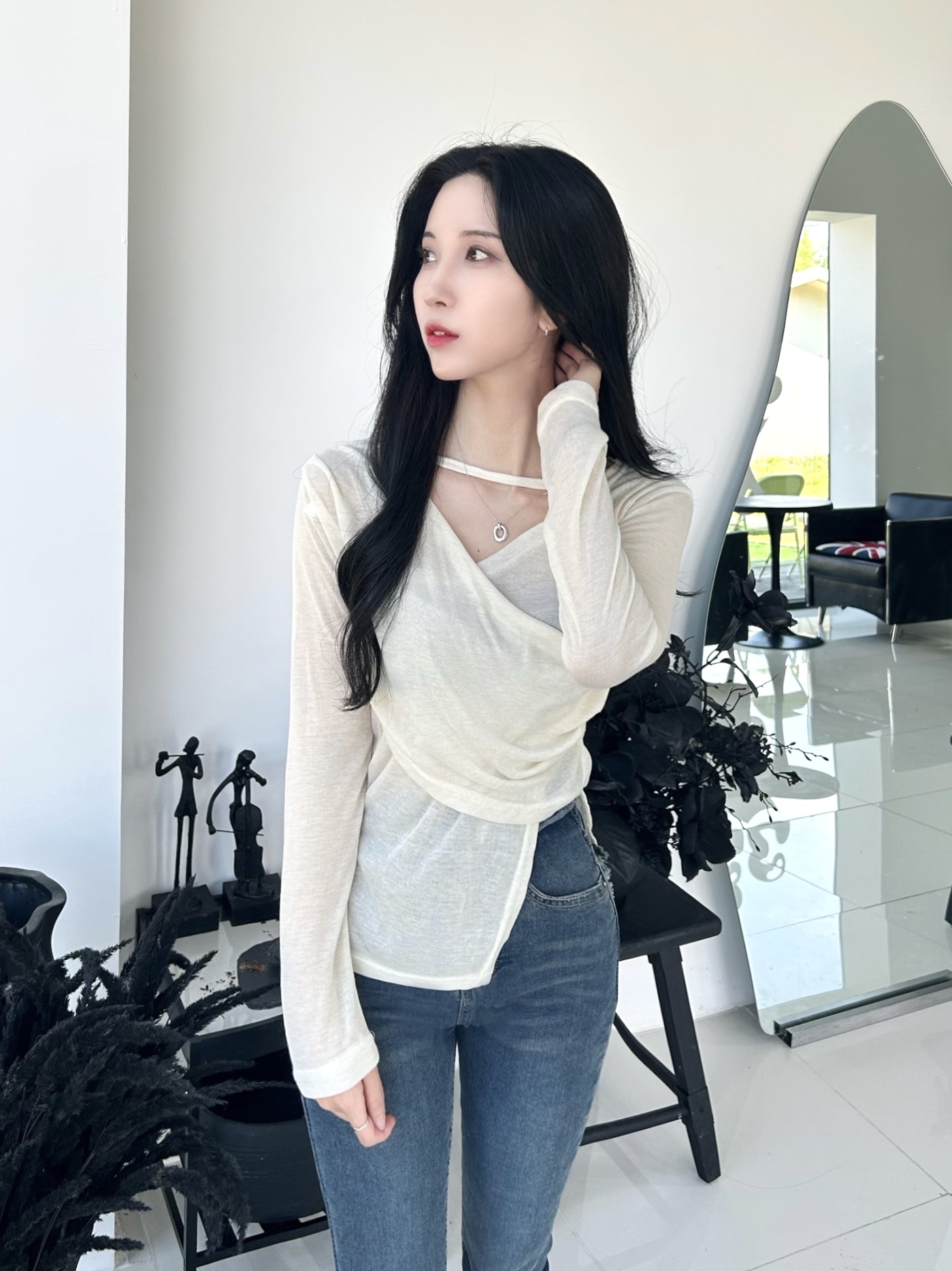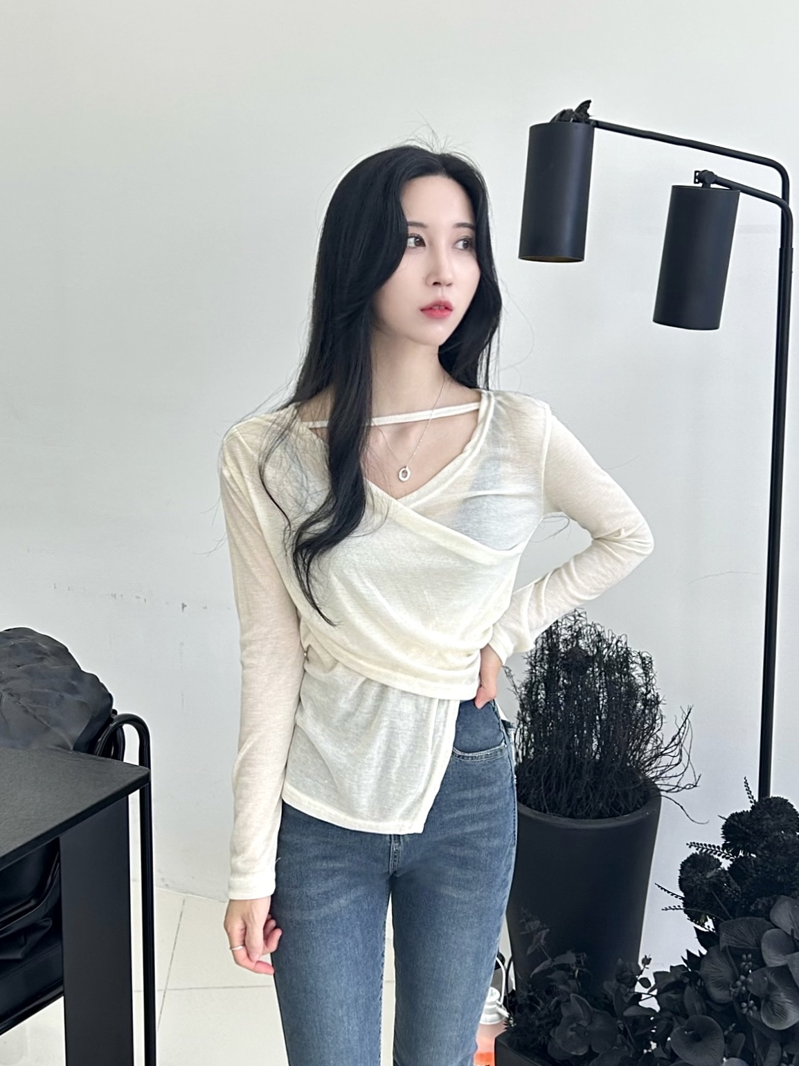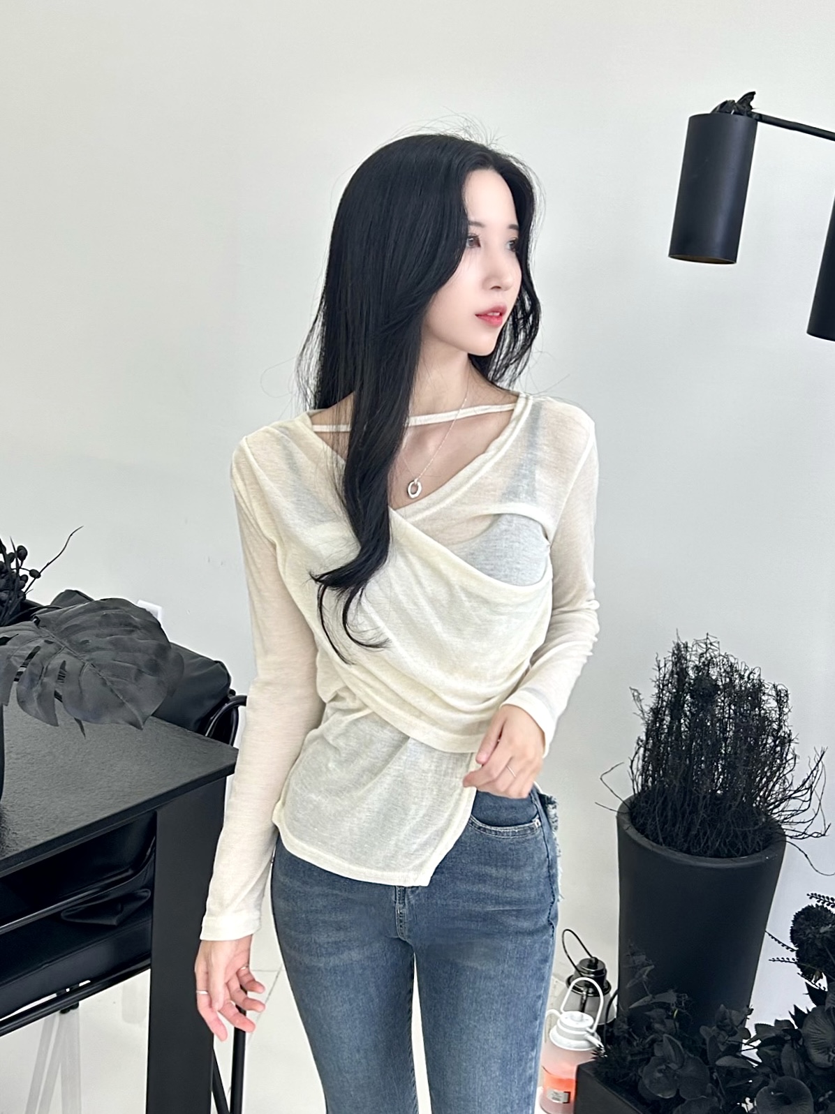 ✓ 은은하게 비치는 시스루 소재로 여성스러움 up
