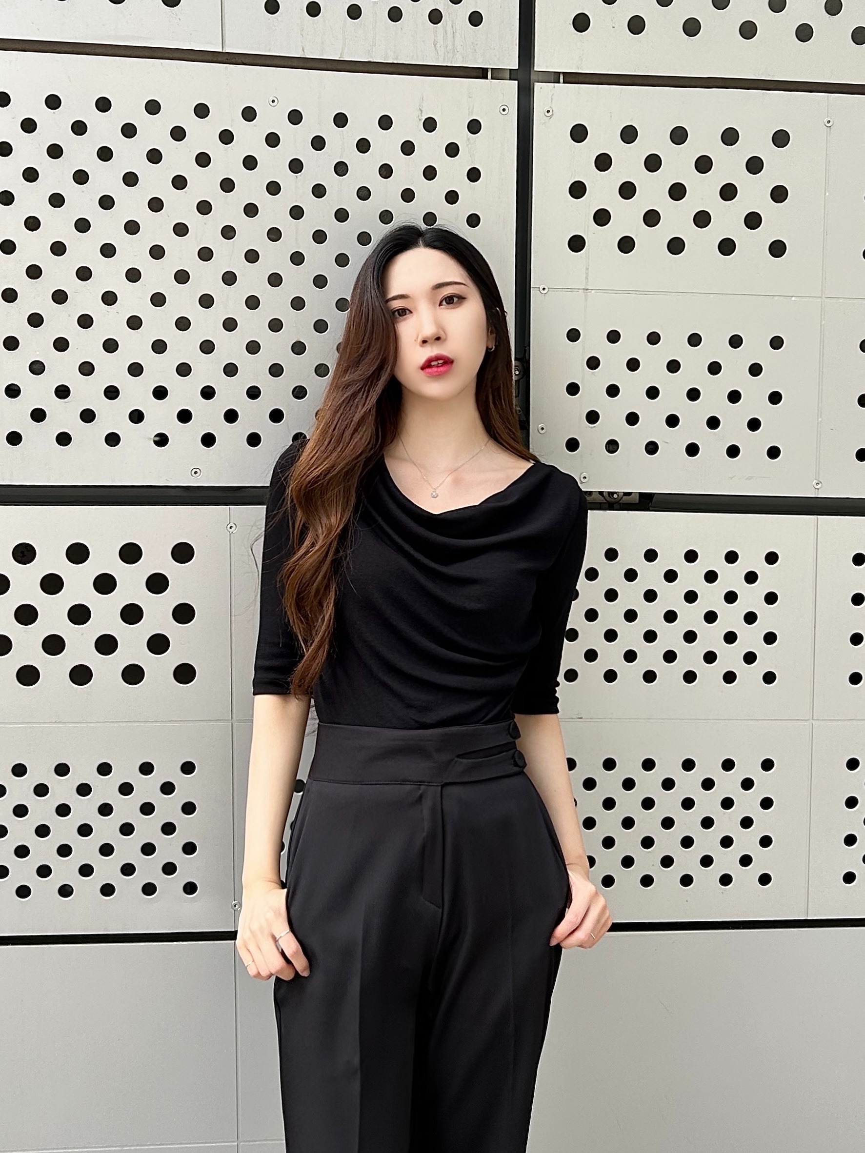 보이고 목은 길어 보이는 효과를 주었어용!