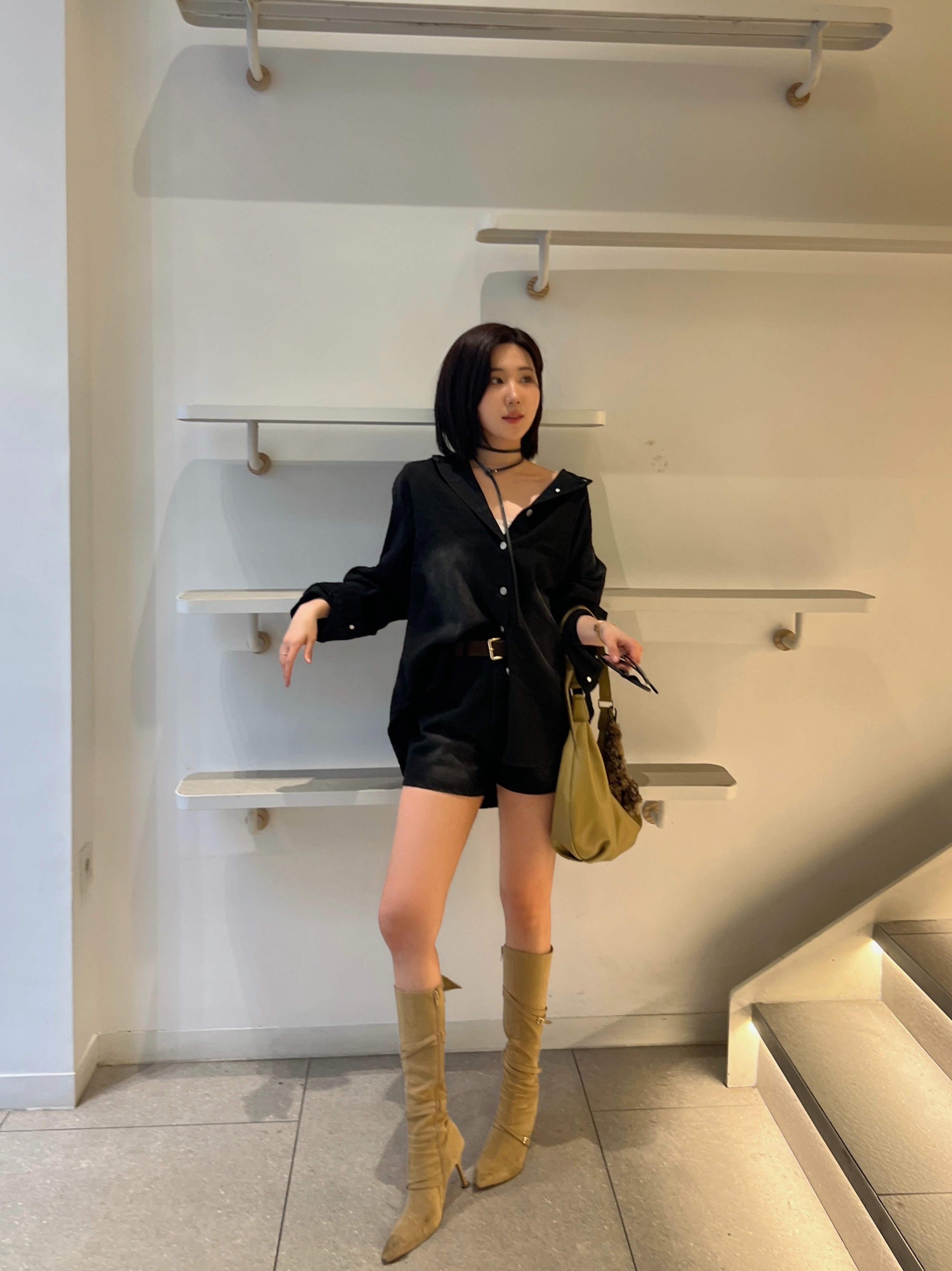 셔츠- 총장 70 / 어깨 51 / 가슴 57 / 밑단 57 / 암홀 21 / 소매길이 55 / 소매밑단 12